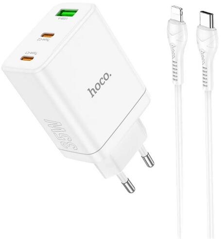 HOCO N33 hálózati töltő USB+2 Type-C aljzat 35W, PD gyorstöltő 3.0 + lightning kábel, FEHÉR