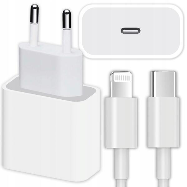 Lewer Gyorstöltő Iphone-hoz 20W 1M Kábel Usb-c Iphone Lightning (USB typ C do Apple Ładowarka 20W biały)